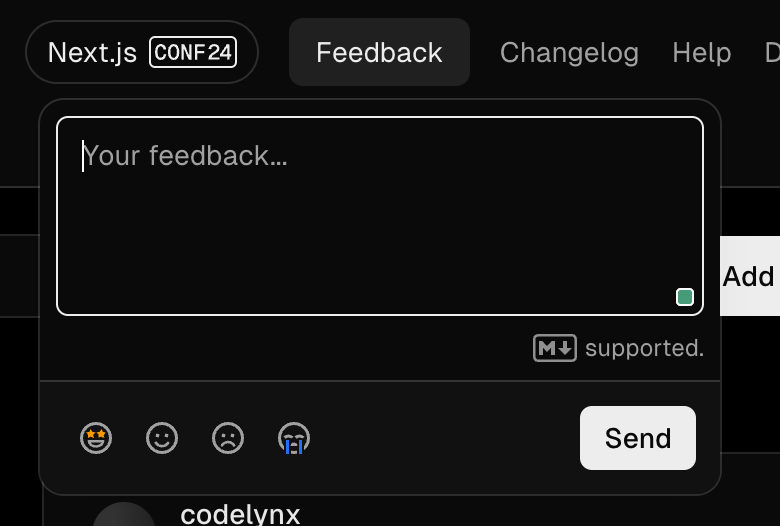 Imagine-toi que comme Vercel tu as une sorte de feedback form en haut de ta page :