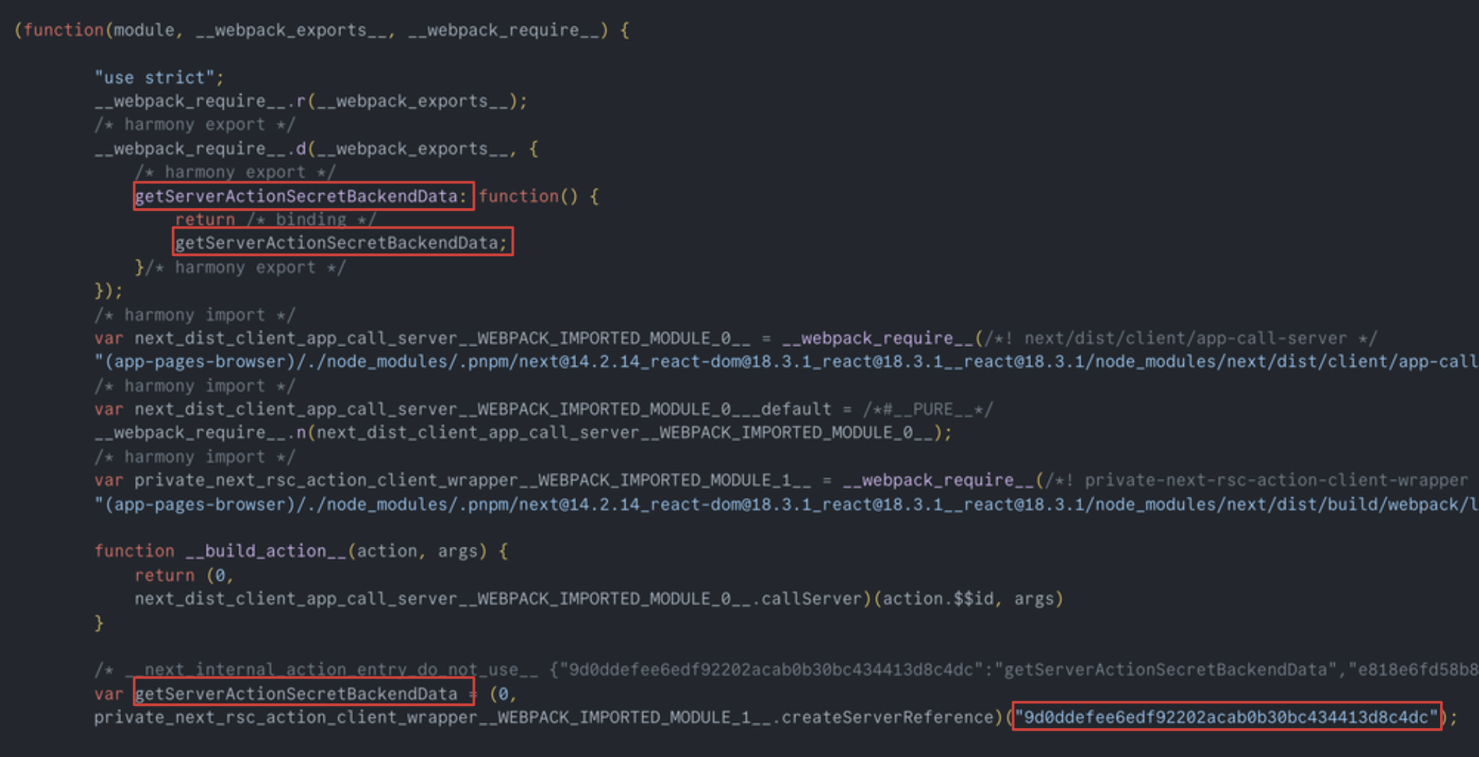 On peut voir que dans le bundle JavaScript, on voit clairement la méthode getServerActionBackendData qui est ajoutée. Celle-ci est définie comme ça :