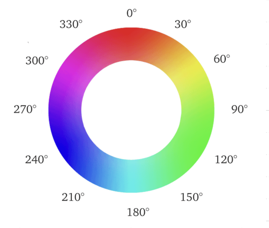 Le Hue est une valeur entre 0 et 360 qui représente un degré de couleur.