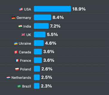 Ce qui veut dire que MacOS et Linux sont en moyenne très utilisés par les développeurs, c'est une cible qui aime beaucoup ces OS. Linux est 6x plus utilisé par les développeurs que d'autres métiers et MacOS est 2x plus utilisé par les développeurs.