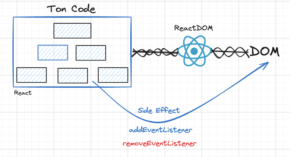 Un side effect ou effet de bord est une action qui doit être effectuée en dehors de React. React gère beaucoup de choses, comme les événements DOM, les states, le rendu de ton application, mais il y a certaines choses qu'il ne gère pas.