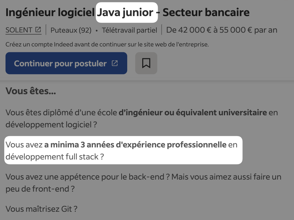 Hmmmm, comment avoir 3 années d'expérience alors qu'on est junior ?