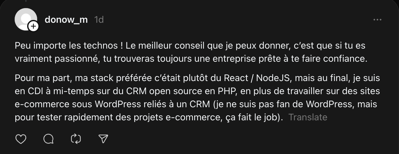 Si tu es développeur React / NextJS et que dans ta ville il y a une offre PHP, postule quand même.