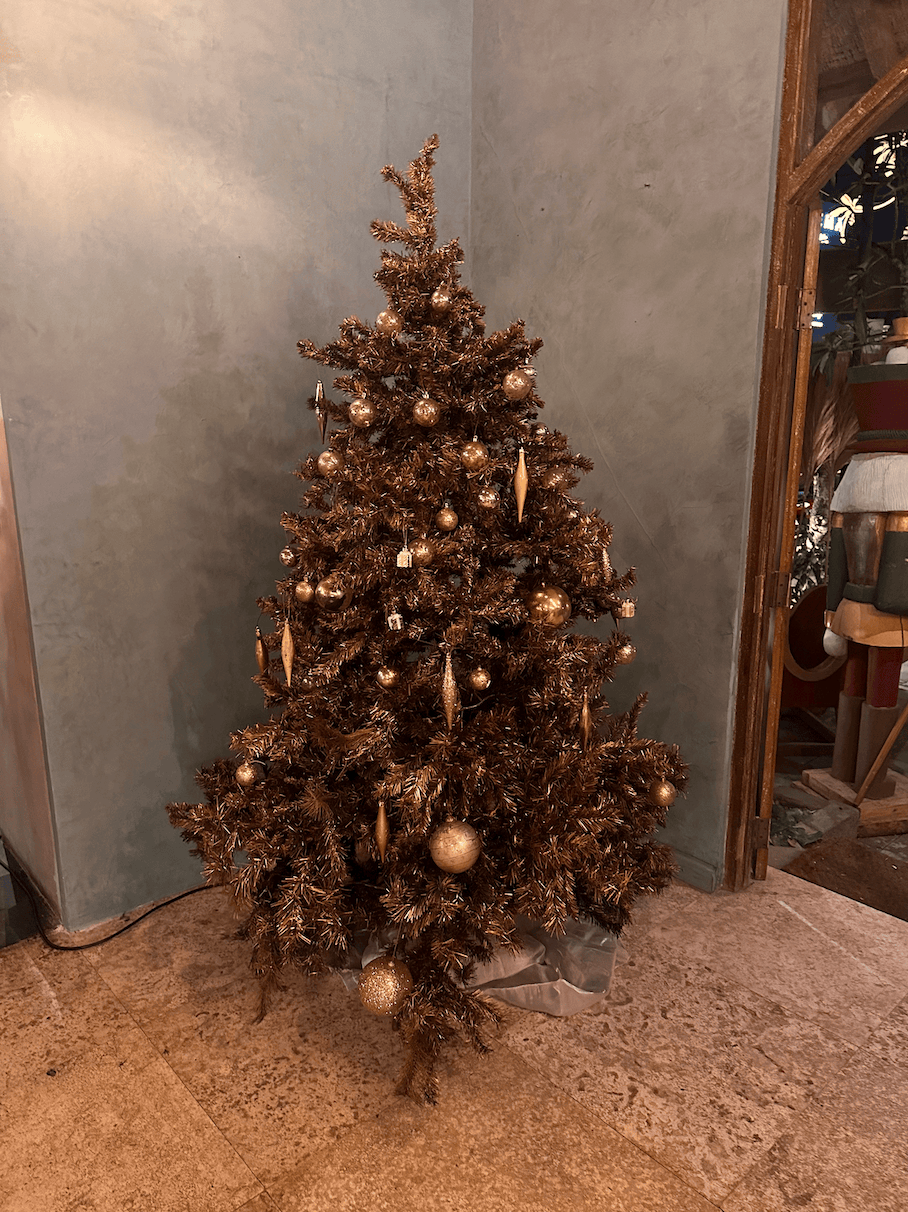 Ici, pour Noël, tous les restos font des menus spéciaux, il y a des sapins partout et des décorations de Noël.